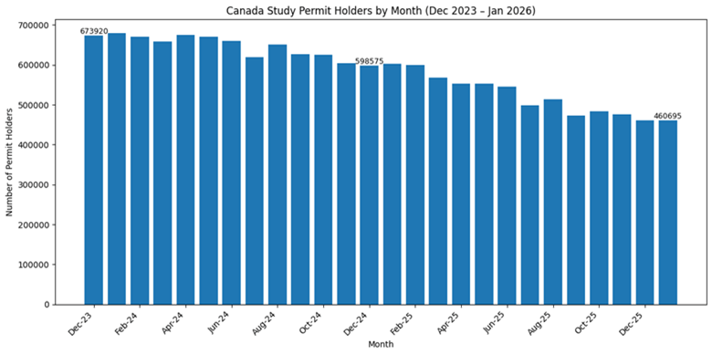 The cap represented a major shift in approach. Instead of allowing demand to dictate intake, the government moved to actively manage volumes. Targets were reduced year over year, with the aim of stabilising and then lowering the overall number of international students in Canada.