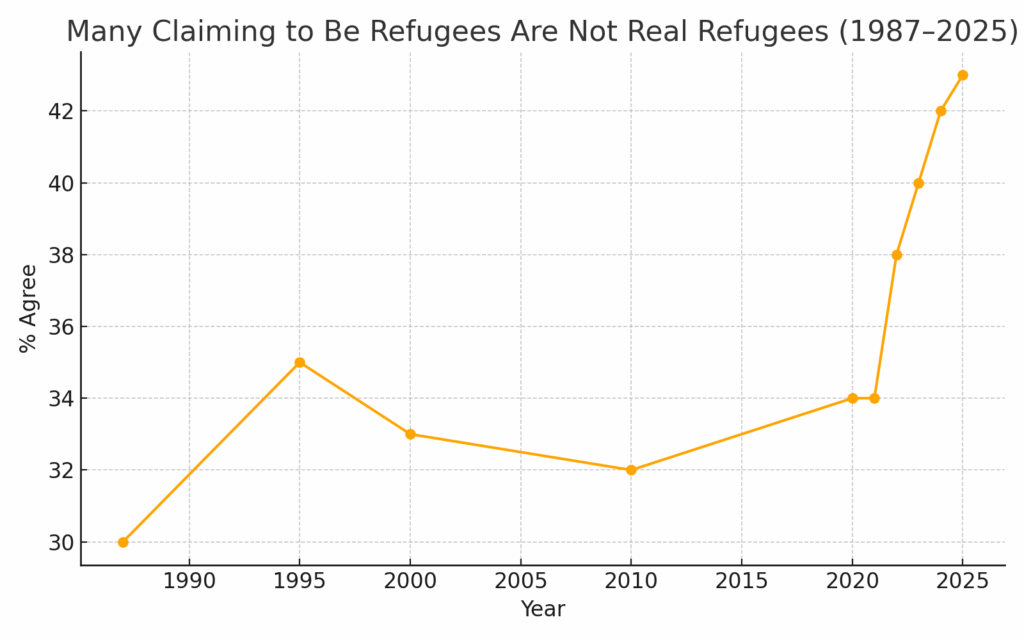 Not entirely. While more people now question the legitimacy of some refugee claims, overall support for humanitarian immigration remains steady. Concerns focus on process, not principle.